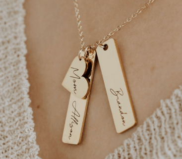 - Personalized gifts (ex: necklace, bracelet, whiskey glass, wallet)