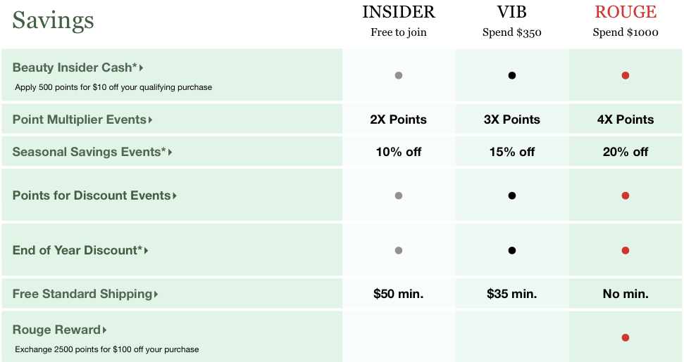 So, in order for you to shop this sale, you must become a Beauty Insider member. It quite simple as to giving a few details about yourself… name, email and I believe a phone number. It takes seconds and you can sign-up in store when shopping or online. Below is a table showing the tiers and rewards you get with each level!