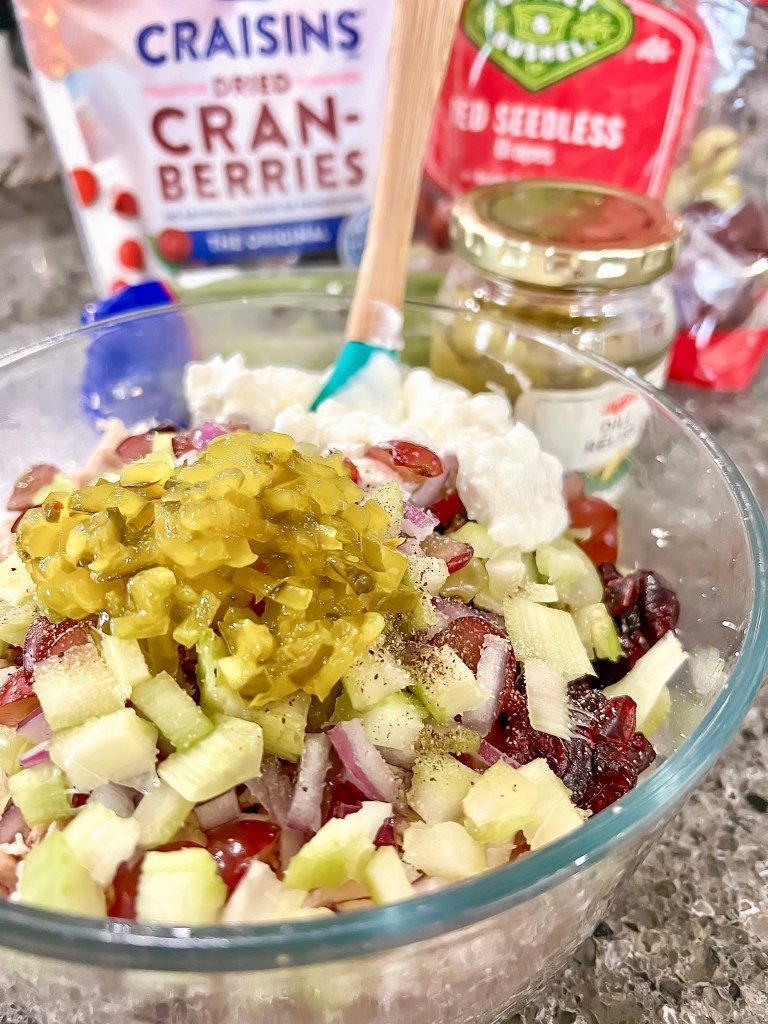 You can pair the classic chicken salad with just about anything… add this with croissant, some crackers or make a charcuterie board out of it. It is the perfect summer meal– crisp & fresh. This recipe is also great for a baby shower, graduation, family gathering, etc!